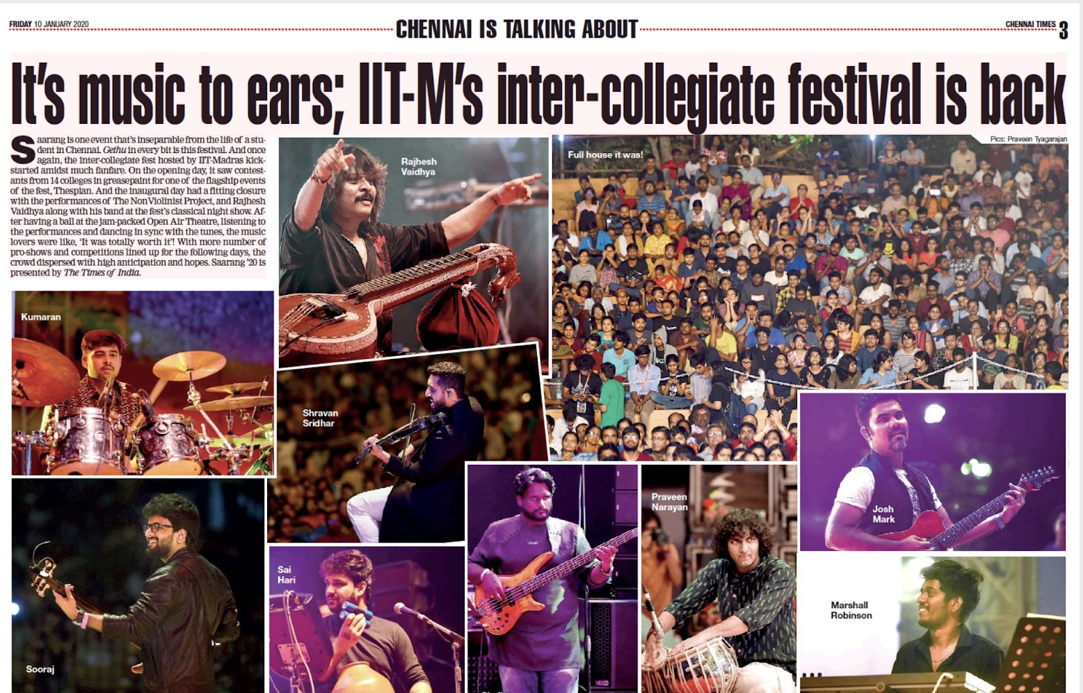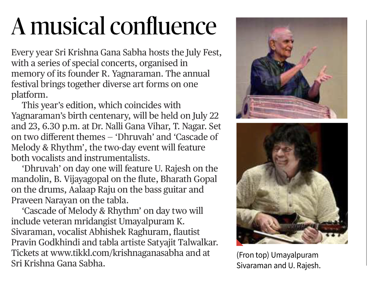 Participated in Chennai’s most celebrated music season for 7 years, accompanying legendary musicians like Rajhesh Vaidhya, Mandolin Rajesh, and Aruna Sairam.