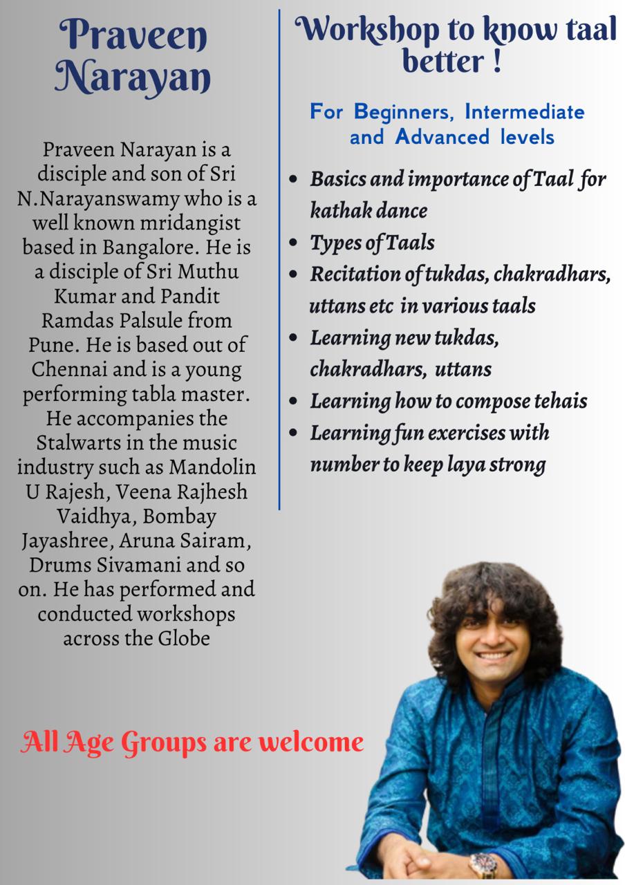 Guru Praveen Narayan trained under Sri Muthu Kumar and Pandit Ramdas Palsule, legendary maestros in the field. The school combines traditional Indian percussion with modern teaching methods, preserving cultural values.